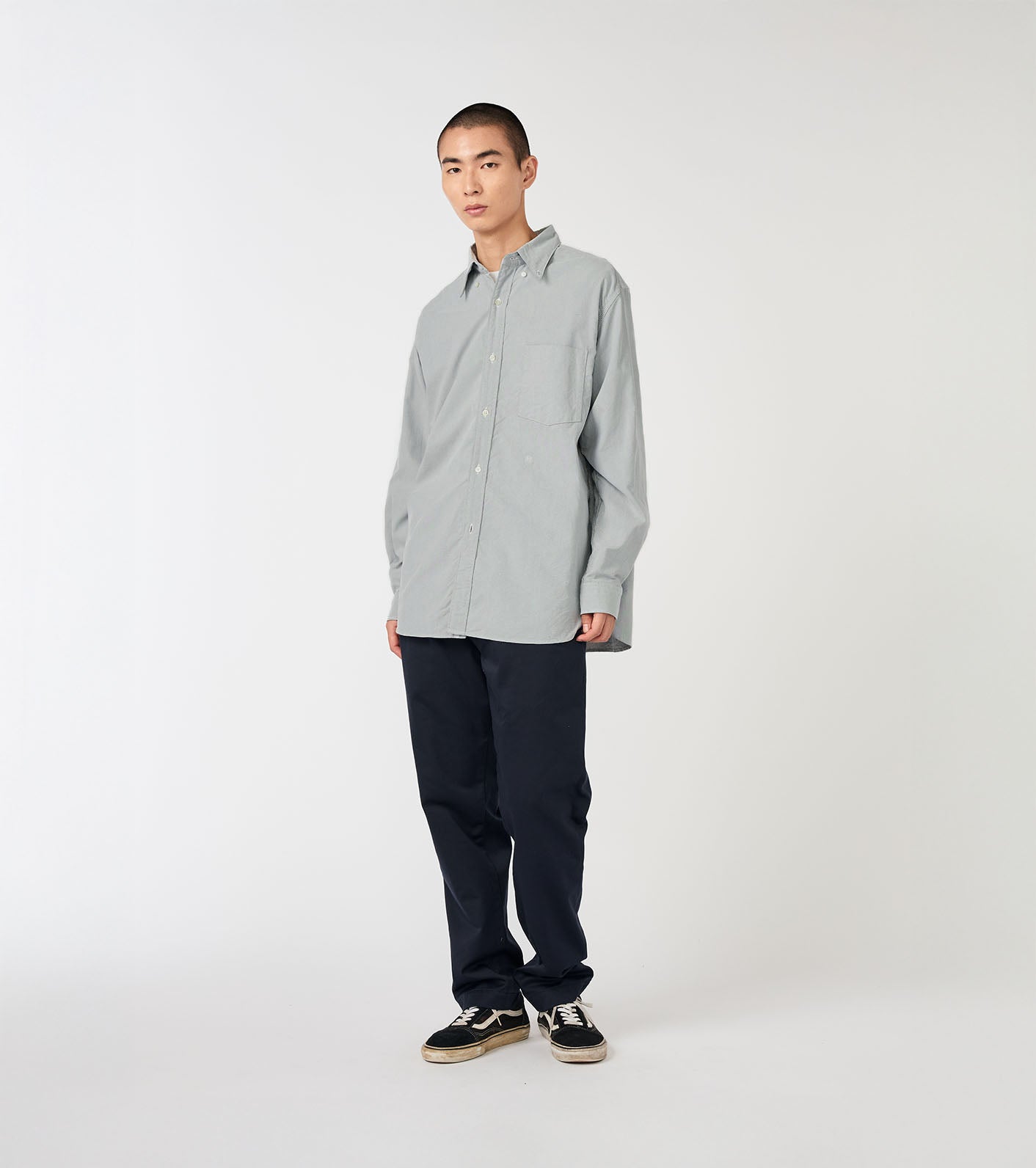 ・Classic chino material made from a 2-layer covering core yarn with recycled polyester wrapped in organic cotton. This nanamica original hybrid fabric combines the soft feel of cotton with lightweight, durable, and quick-drying functionality.