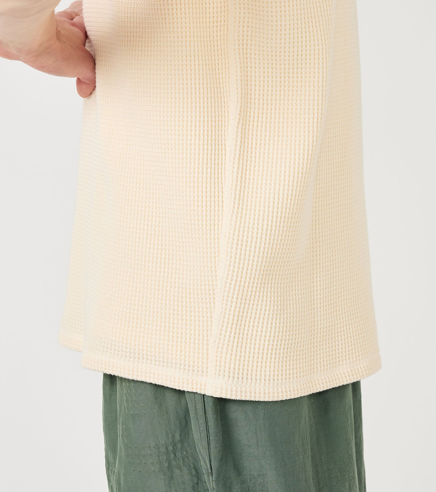 ・Made from thermal fabric knitted with a covering core yarn of organic cotton and recycled polyester.