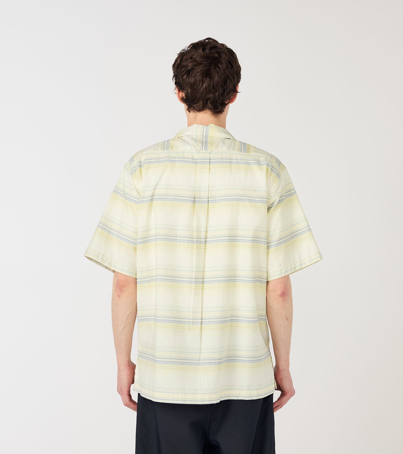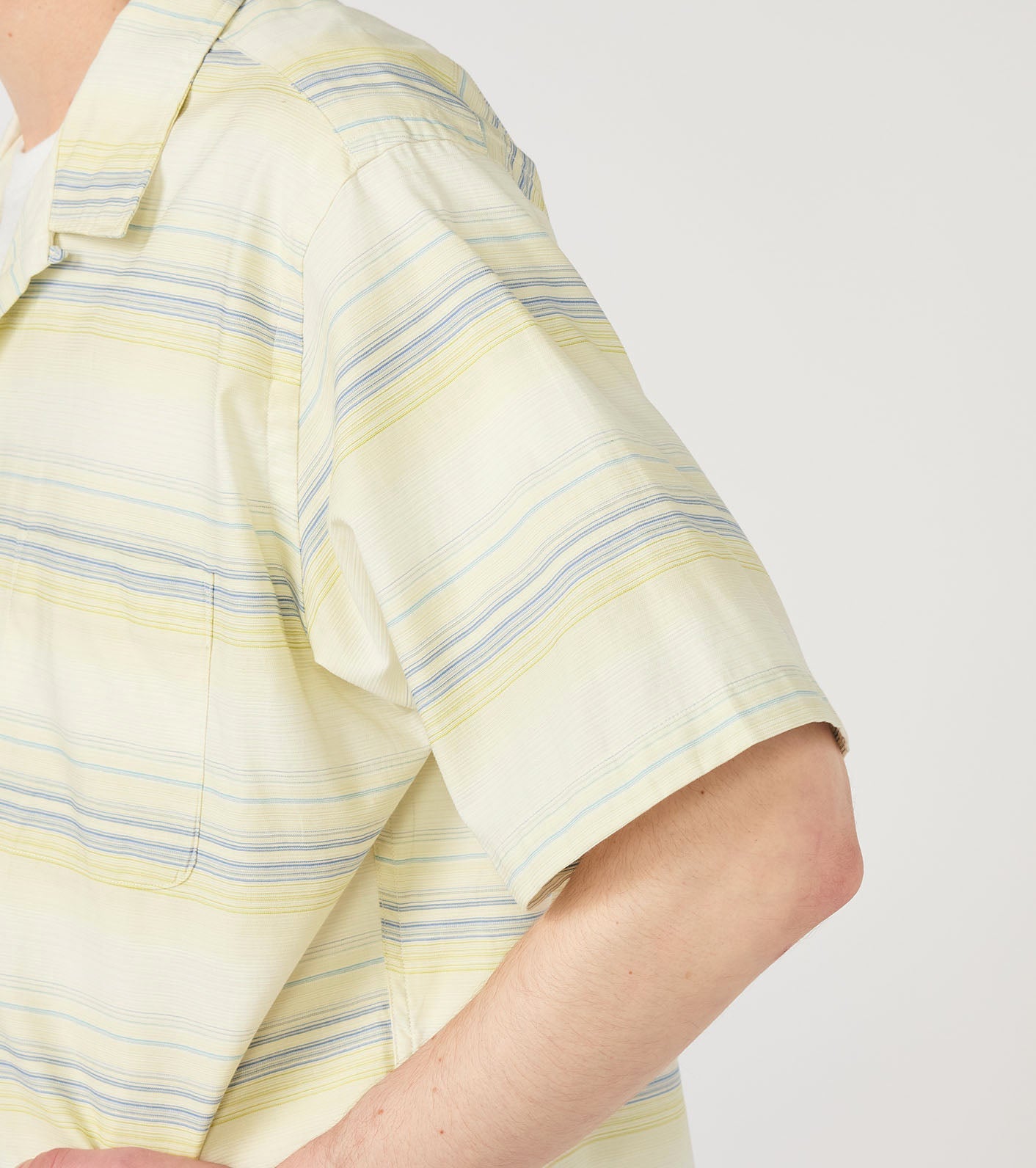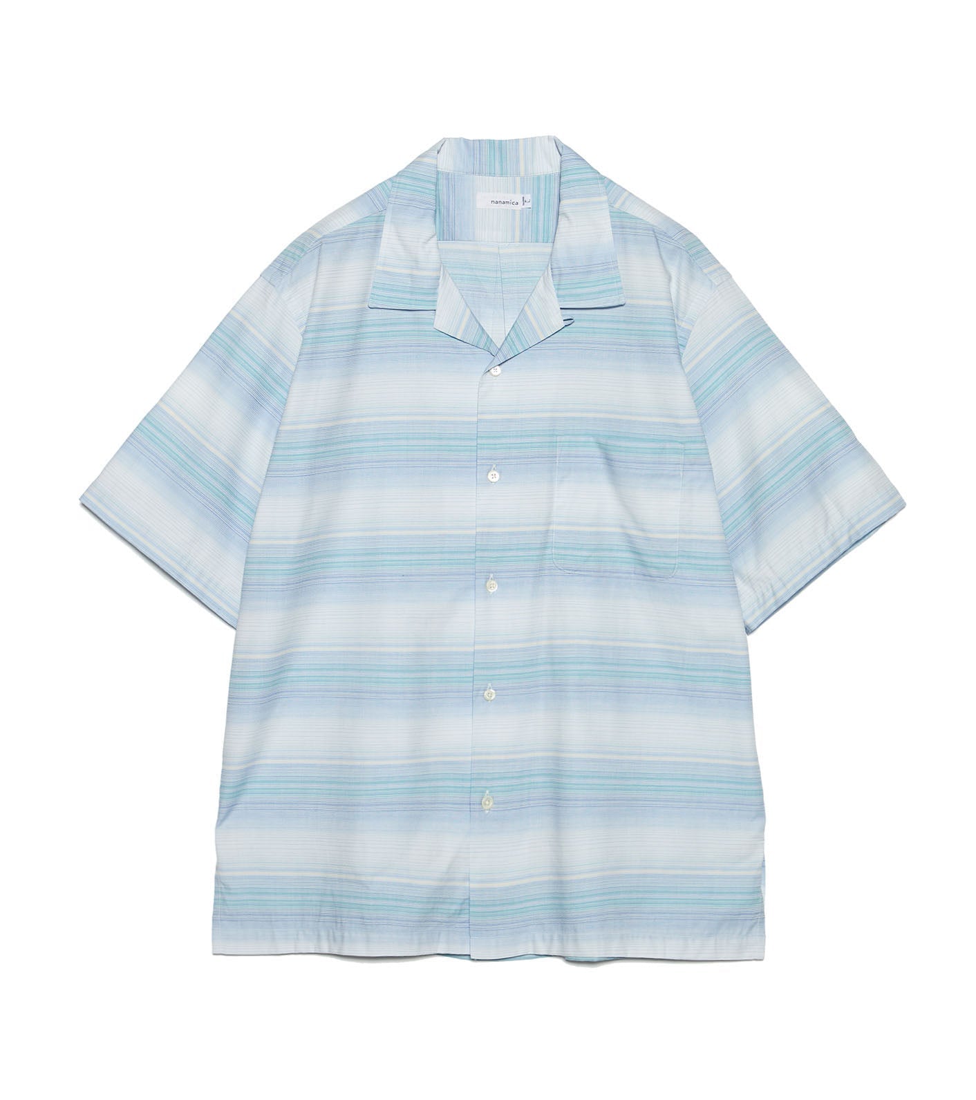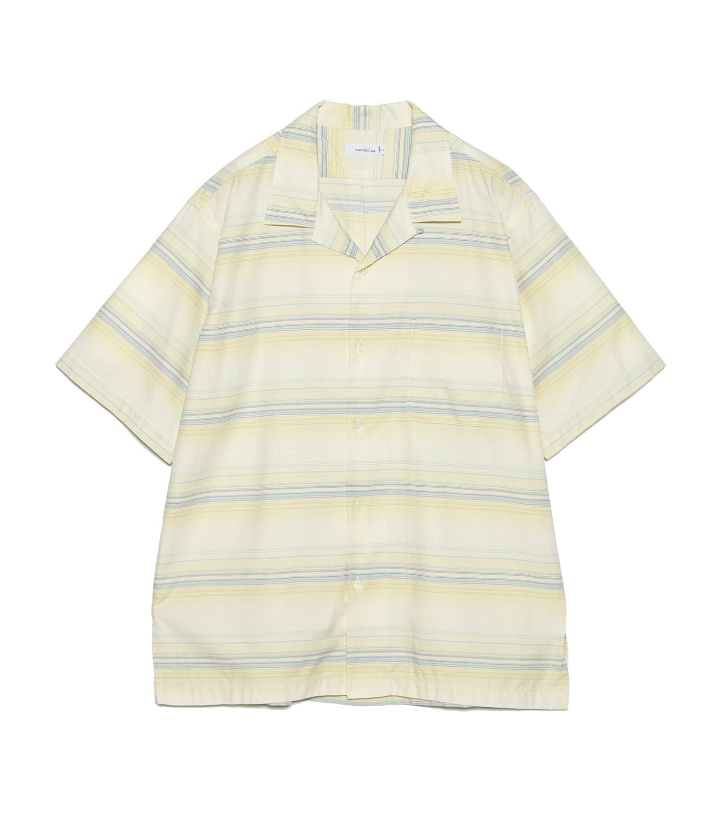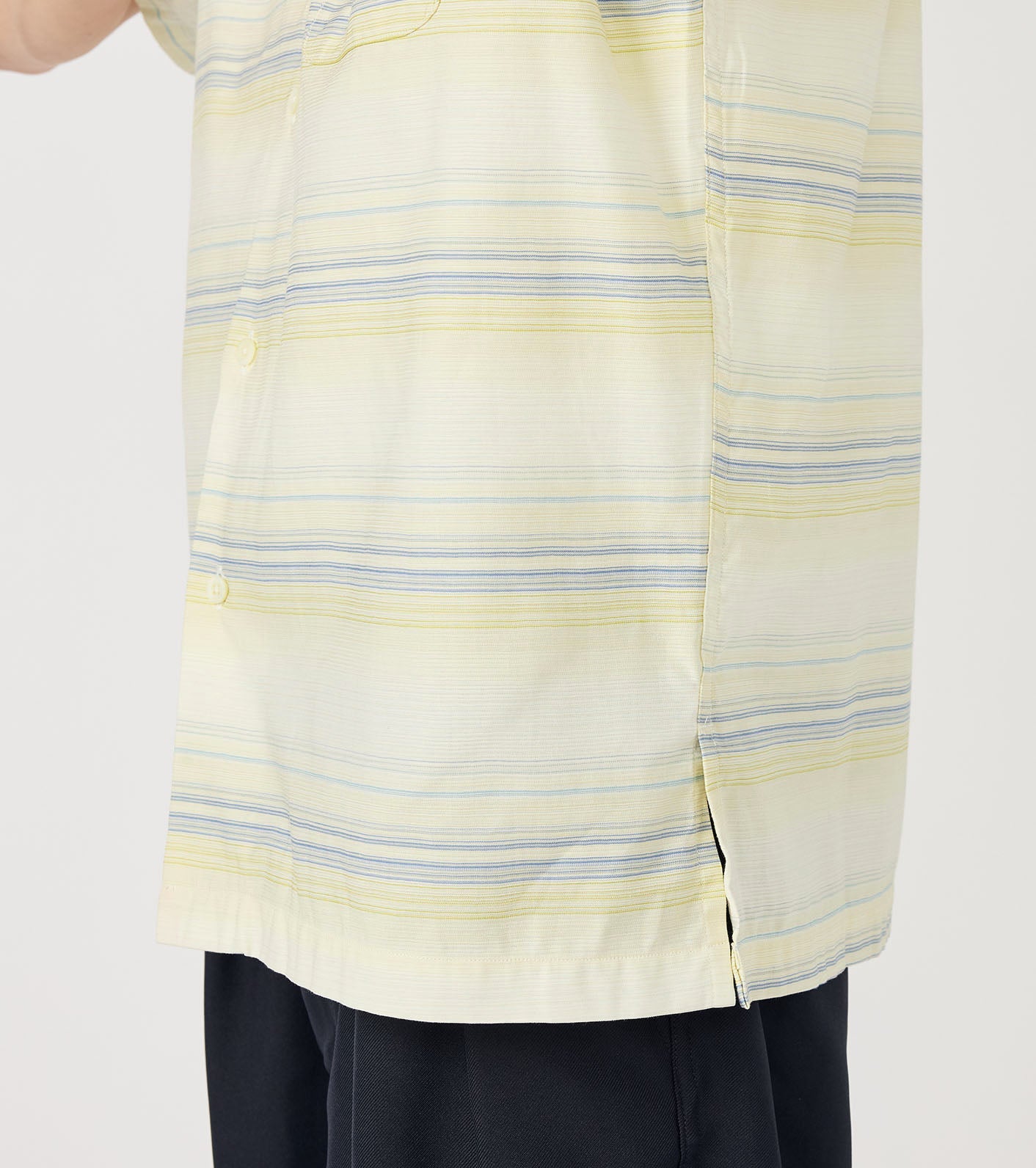 ・Open-collar shirt made from organic cotton and recycled polyester.