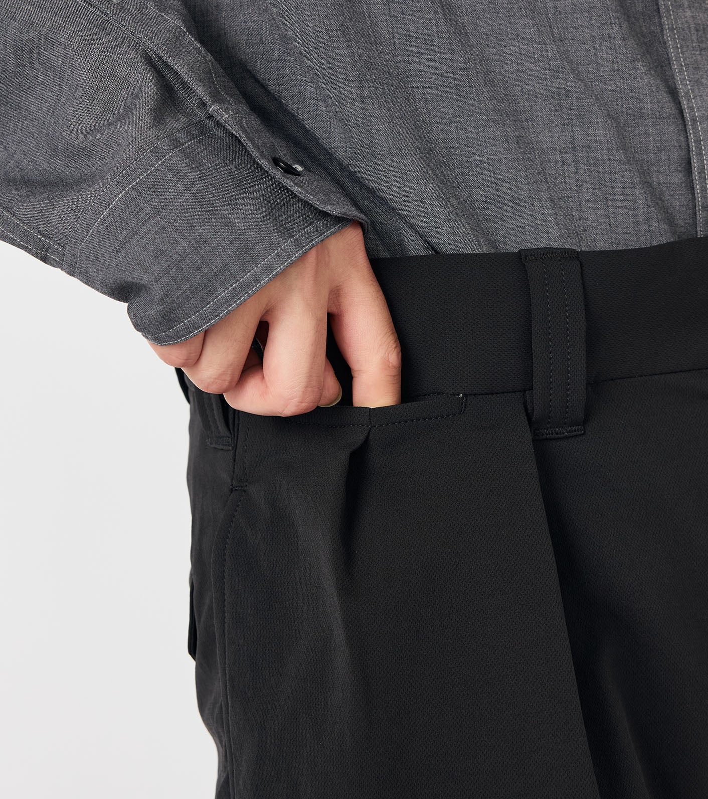 ・Wide-cut two-tuck shorts made with ALPHADRY®, featuring excellent moisture-wicking, quick-drying, and stretch properties.