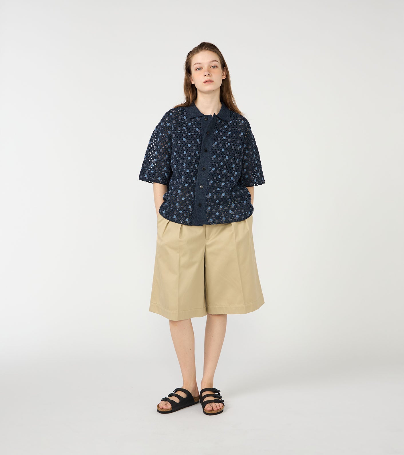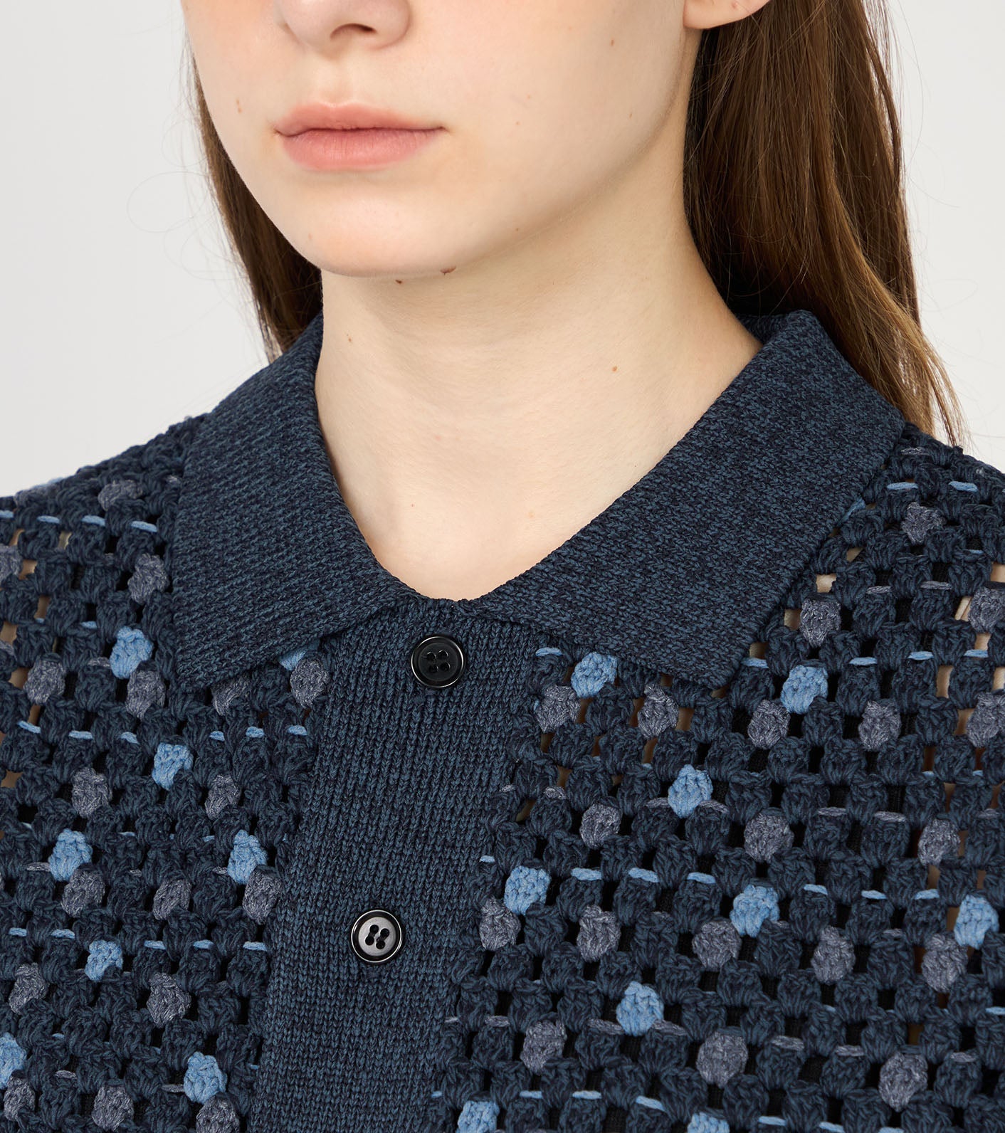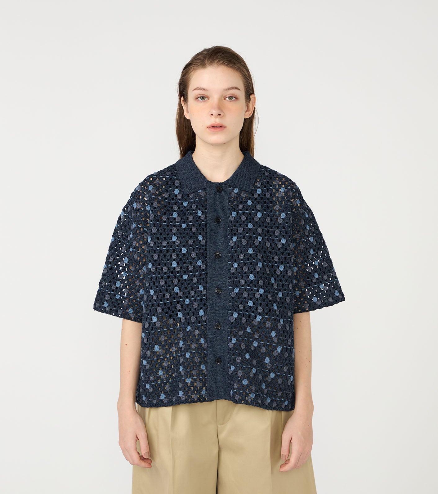・Open-knit shirt made with polyester lilyarn.
