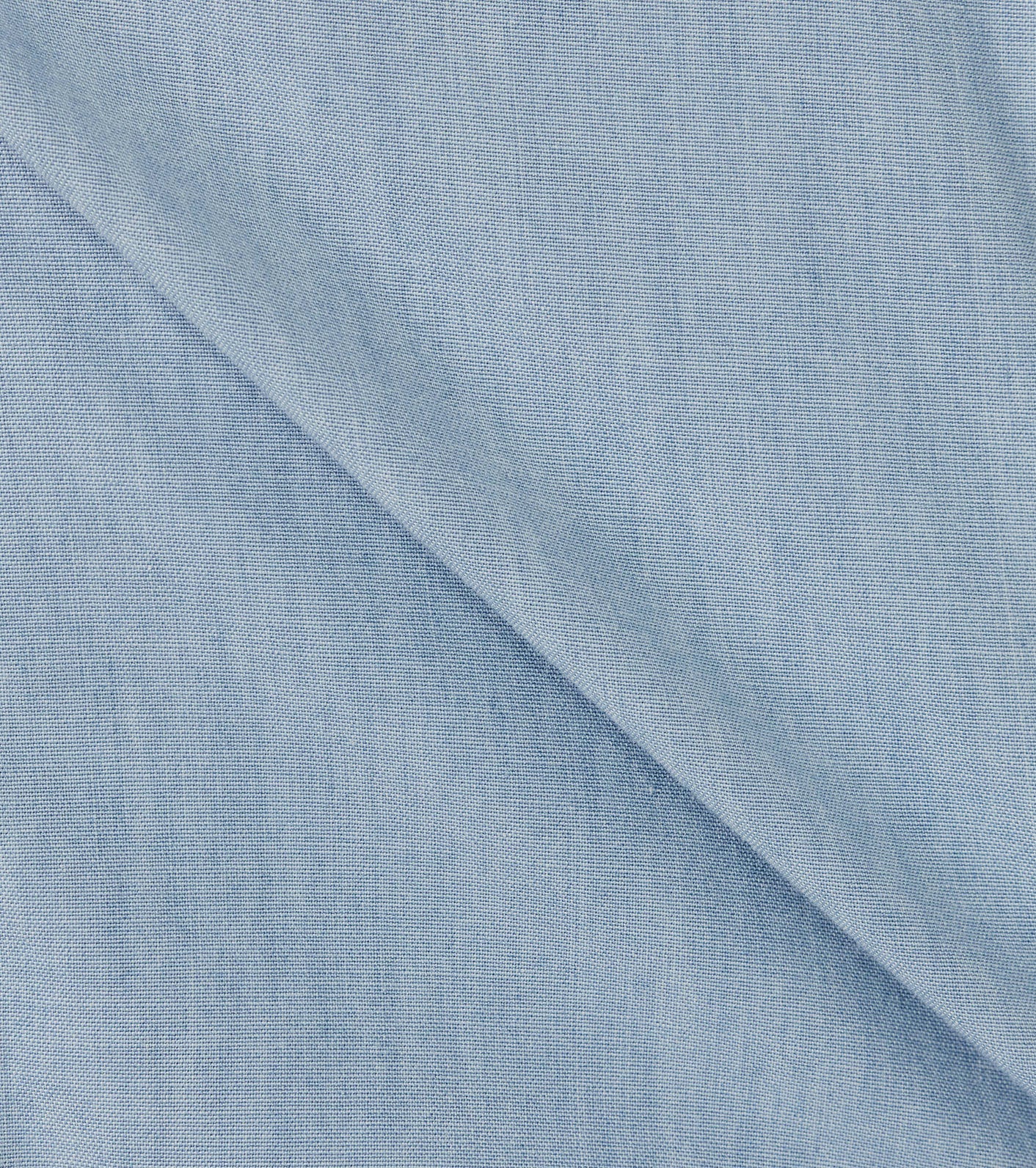 ・Chambray fabric made with rope-dyed covering core yarn—polyester wrapped in cotton for a dual-layer structure.